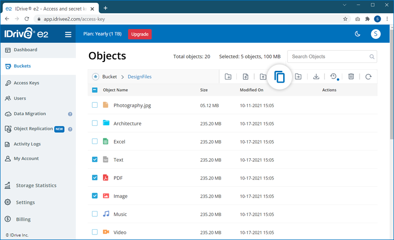Note: IDrive® e2 does not support copying the entire folder.